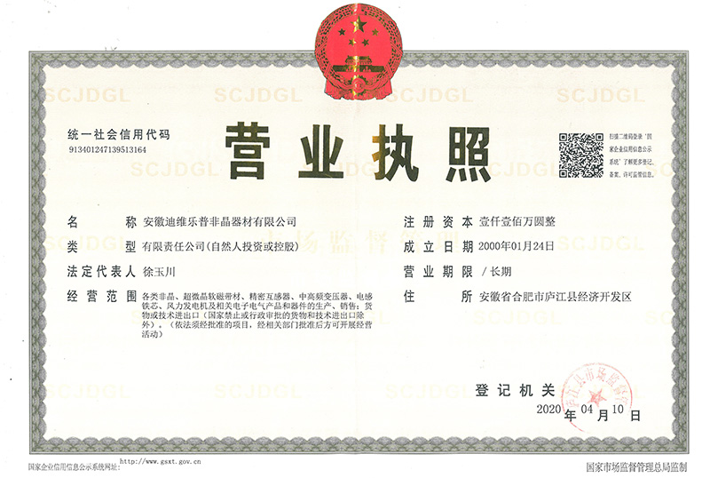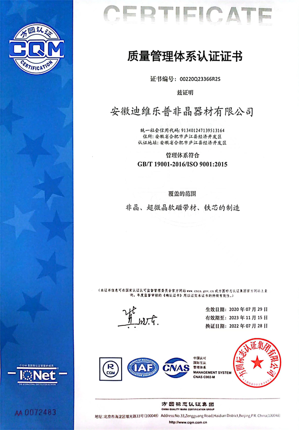 為響應國家標準化發(fā)展綱要,推動高質量發(fā)展,建設社會主義現代化國家。 安徽迪維樂普非晶器材有限公司、非晶合金電力互感器材料研究中心;為促進標 準化發(fā)展、提升標準化水平;實現企業(yè)有序發(fā)展、有規(guī)可循;產品質量有據可依、 方便客戶甄別選用,特制定本企業(yè)質量標準。